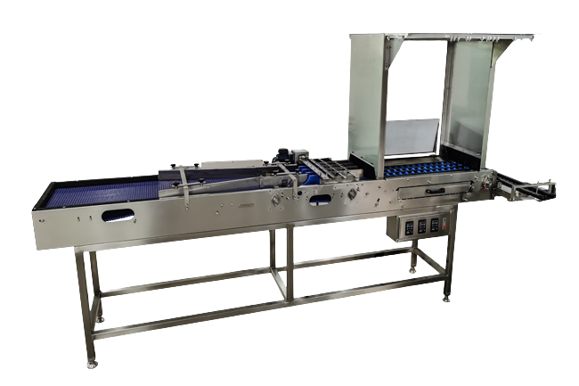พร้อมกลับหัวไข่ และจัดเรียงไข่จาก3แถวเป็น1แถว